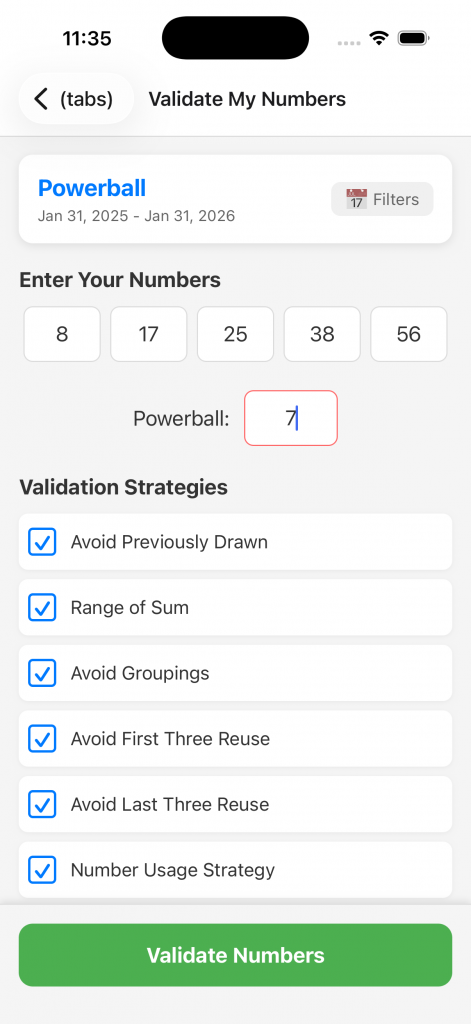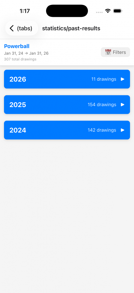 - Complete lottery drawing history (years of Powerball and Mega Millions results)